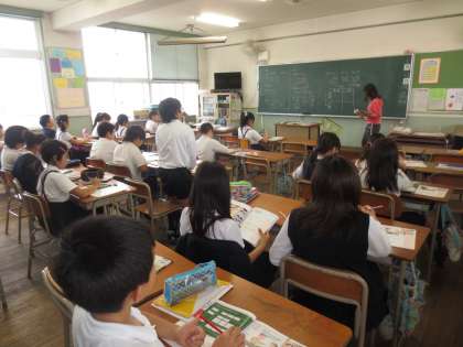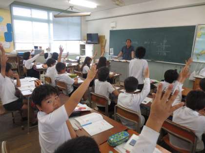 中・高学年の算数科では、一年を通して少人数及び習熟度別に学習を進めています。しっかりと聞き、積極的に発表していました。