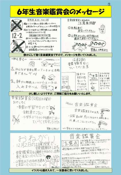 11/28 6年生 音楽鑑賞へのメッセージ(1)