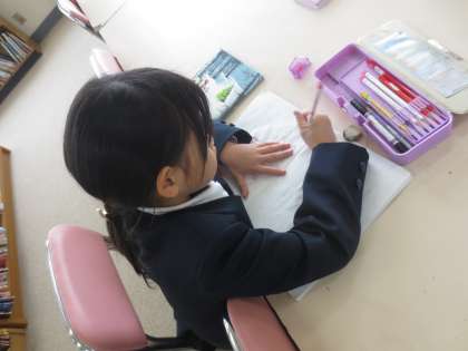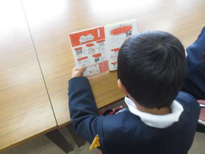 本の整理や修理、図書の貸出・返却をしていただいています。本が好きな子はいつも図書館にやってきます。新しい本を手にとりさらに興味を高めています。