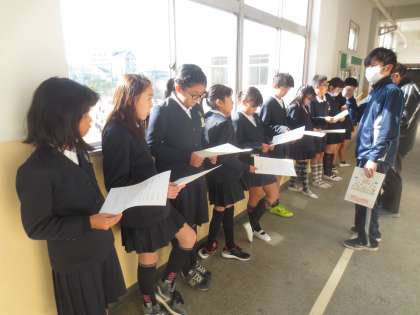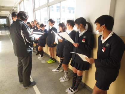 学校で学んだ英語を実際に使って、コミュニケーションの楽しさを体験する取り組みが、12/9(土)大阪市立南高等学校で行われます。巽南小学校の5・6年生で申し込んだ10名も参加します。スポーツを取り入れた英語アクティビティや英語を使ったゲーム・ダンス等で、楽しく英会話体験すます。下記写真は、参加する児童に当日の予定等を説明しています。