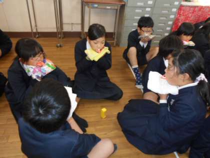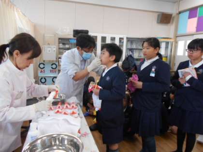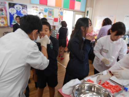 歯のお話の後は、保健室でフッ化物塗布をしました。