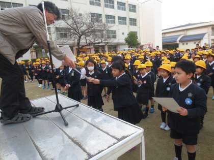 校長先生より、大阪市学校図書館協議会賞の表彰をしました。