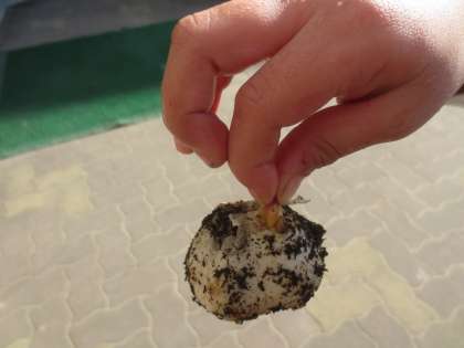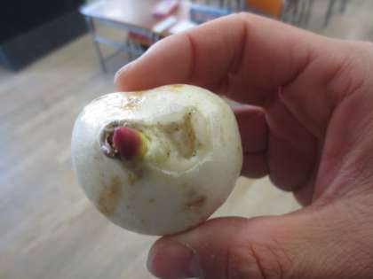 先日、1年生の子どもたちが、一人一人の植木鉢にチューリップの球根を植えました。その球根をカラスが掘り出し穴をあけていました。