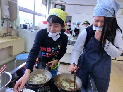 6/13(水)6年1組が調理実習で、「他人丼」をつくっています。