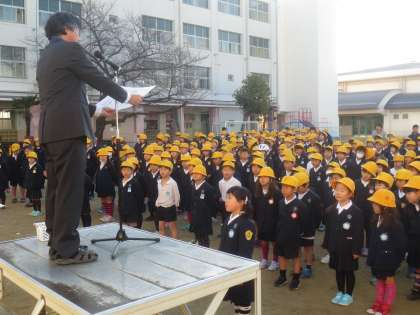 月曜日の全校朝会です。新田先生より今週の生活目標等のお話がありました。2学期がもうすぐ終わります。自分の机などはきちんと片付いていますか。そして、使ったものはきちんと後片付けをしていますか。みなさんは、自分で整理整頓ができます。すぐにはじめください。