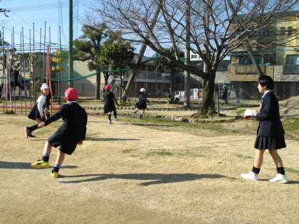 寒い季節ですが晴天の運動場は、子どもたちが元気に遊んでいます。子どもたちが走りまわり、友だちと楽しく遊んでいる姿はとても微笑ましく、見ているだけで元気になります。