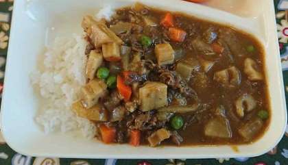 冬野菜のだいこん、れんこんなどの入ったカレーライスです。