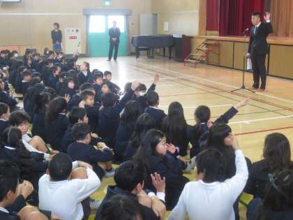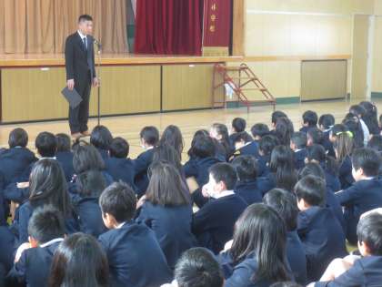 次に上野先生が生活指導の話をしました。2学期は一番成長するときです。みなさんはこの長い2学期を乗り切りました。とても頑張りました。みんなでみんなをほめてあげましょう。