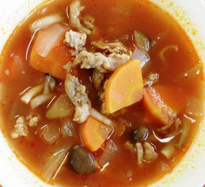 鶏肉を主材にたまねぎ、にんじん、トマトの入ったケチャップ煮です。