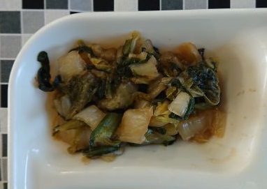 冬が旬のきくなとはくさいを使ったおひたしです。あっさりとした味付けに仕上げています。