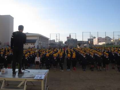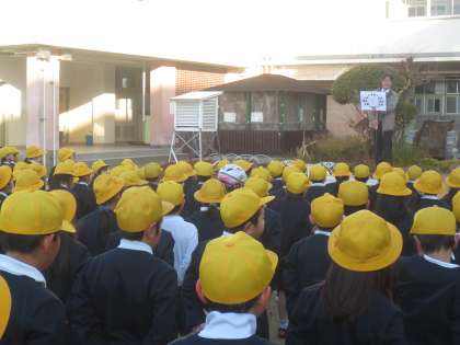 上野先生より今週の生活目標のことや、集団登校についてのお話がありました。