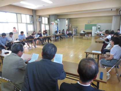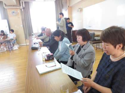同窓会会長 山田順一さんのご挨拶の後、校歌を思い出して歌いました。どの方も真剣に歌っていました。