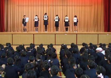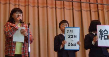 続いて、給食委員会の児童が、来週から始まる給食週間について発表をしました。