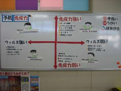 4〜6年生は、測定の前に「かぜにかからないために…」の