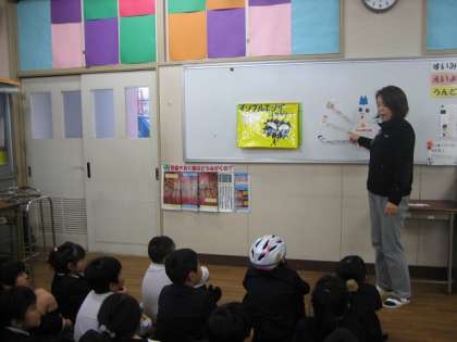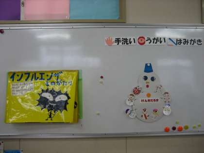 測定の前に、1〜3年生は「インフルエンザものがたり」の