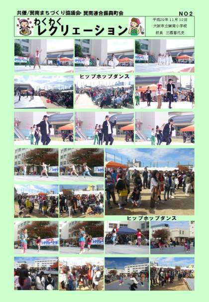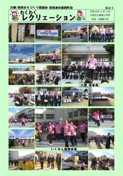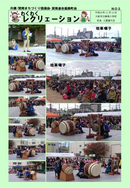 11/12(日)に第16回 ふれあいの集い「わくわくレクリェーション」が開催されました。『夢と希望にあふれる巽南のまちづくりをめざして!』をテーマに、巽南まちづくり協議会と巽南連合振興町会の共催で行われました。参加した子どもたちは、とても楽しんでいました。詳しくは左下の配布文書に写真を載せていますのでご覧下さい。