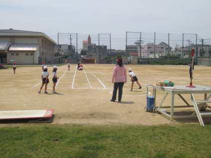 1年生もボール投げの記録を計測しています。はじめて挑戦する子どもいて・・・遠くへ投げるのは難しそうでした。