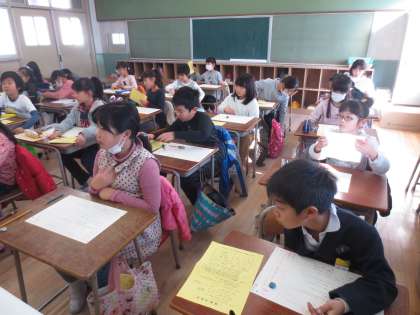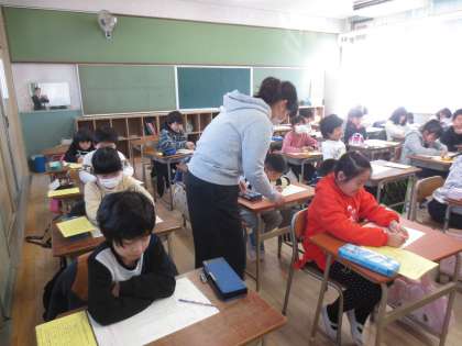 漢字検定が巽南小学校で行われました。受付を終えて各会場(教室)に集まっています。それぞれの会場には、PTA・保護者の方々が検定試験管として、ご支援ご協力いただいています。ありがとうございます。下記の写真は、各会場の漢字検定前の説明をしているところです。