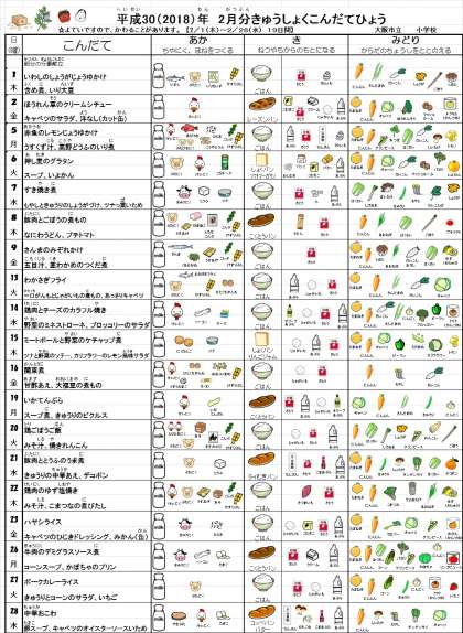1/31 2月給食献立表・はぐくみ通信2月号・給食だより2月号