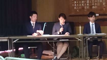 次に、各学年の実践の報告をしました。映像を交えて具体的な取組内容を発表しました。発表後の質疑応答を終え、教育センター 授業づくり指導員の川野喜代先生に、指導助言をしていただきました。