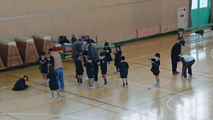 こまは、なかなかひもを結ぶのができず難しかったです。地域の方に丁寧に教えてもらい、こまを回すことができました。いろいろな技も見せてもらいました。