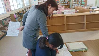 自分の宿題をしたり、光山貴子先生にプリントをもらったりして自主学習をしています。低学年の部では、1年生は20名ほどが参加しています。
