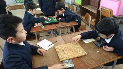短い時間ですが、将棋にふれる機会が週1回あることで、子どもたちは遊びながら考える力がついてきます。ほとんどが駒の動かし方を理解していますが、なかなか覚えられずに、友だちから教えてもらいながら対戦をしていることもあります。