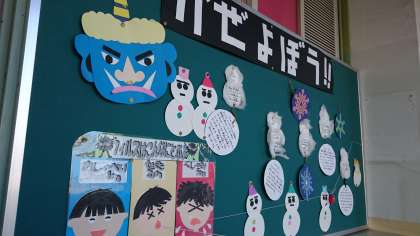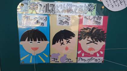 保健室の前に「かぜ予防」のクイズが掲示されています。自分たちでできる「かぜ予防」です。クイズにチャレンジしてください。