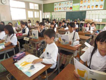 気持ちをこめて、しっかりと音読をしています。子どもたちは、内容が理解できるまでよく読んでいるので、教科書を見ないでも音読ができるそうです。
