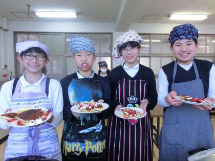 2/14(水)6年生が調理実習をしました。デザートづくりで、「ほっとするホットケーキ」の調理実習です。どのグループも仲よく、ほっとする美味しそうなホットケーキを調理していました。お腹がいっぱいになったはずですが・・・給食もしっかりと食べたそうです。