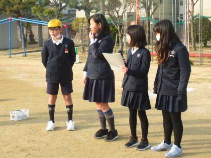 2・5年生がペアになり集会活動をしています。集会委員会の児童が、「ドッジボール」のルール説明をしています。5年生は、利き手とちがう方で投げることがルールです。5年生はかなり投げにくそうにしていましたが、2年生と楽しく「ドッジボール」をしてくれました。