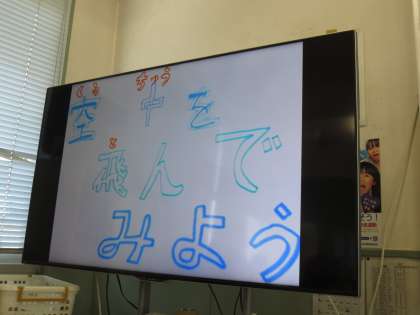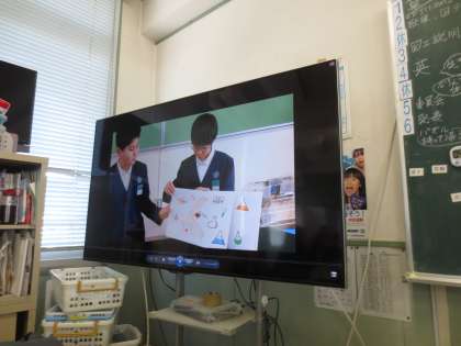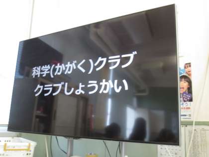 給食時間にクラブ活動の様子をテレビ放送しています。今日は理科室で活動している「科学クラブ」の発表です。