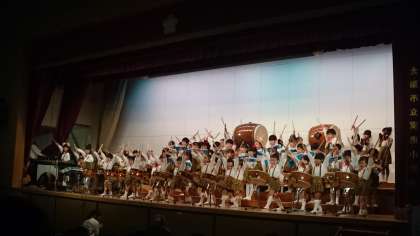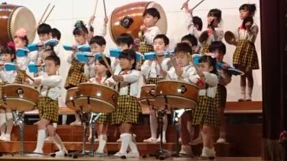ばら・ふじ・こすもす組の合奏(Back To The FuTure・Sing Sing Sing )です。和太鼓を上手に演奏し迫力満点の合奏でした。