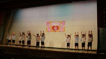 ゆり組の遊戯(恋、弾けました)です。しっかりと音楽に合わせてとても可愛く踊っていました。
