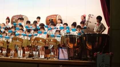 ひまわり組・たんぽぽ組・ちゅうりっぷ組の歌と合奏です。どの子も上手に楽器を演奏していました。