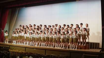 さくら組・もみじ組の歌(シンデレラのスープ・おどるぽんぽこりん)と合唱(ピクニックマーチ)です。
