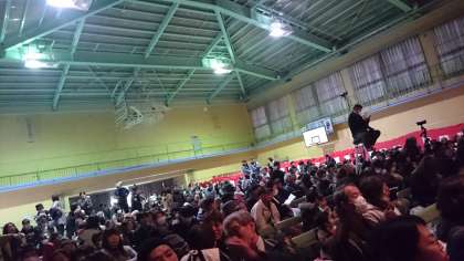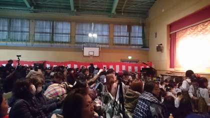 巽南小学校の講堂で、日の出学園の生活発表会が行われました。会場は保護者の方々で超満員です。桑田園長先生よりご招待を受け、今日はPTAの唐木さんと観賞させていただきました。