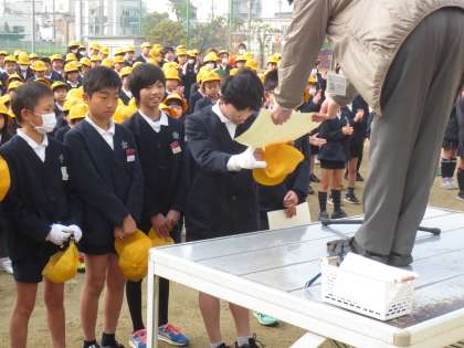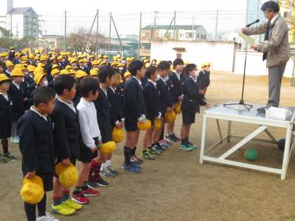 月曜日の全校朝会です。松岡先生から今週の生活目標のことや、風邪予防に体調を整えることのお話がありました。寒さに負けず元気に「朝のあいさつ」をしていました。