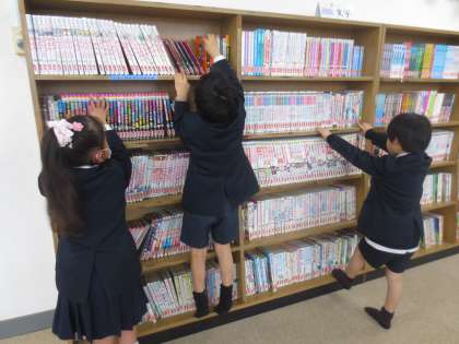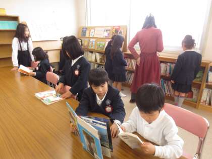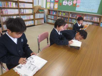 3/5(月)毎週、月曜日は学校図ボランティアの植田さんに図書館を開放していただいています。本の整理や修理、図書の貸出・返却をしていただいています。