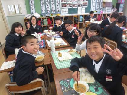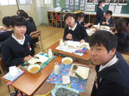 3/5(月)6年生の給食時間の様子です。みんなとても楽しく給食を食べています。食事時間のマナーは守り、友だちとおしゃべりをして食べています。お友だちと楽しく食べる給食もあと少しです。