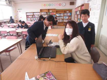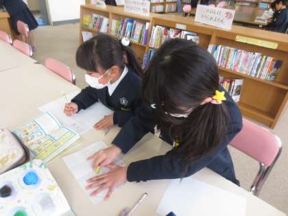木曜日は学校図ボランティアの大久保さんに図書館を開放していただいています。本の整理や修理、図書の貸出・返却をしていただいています。