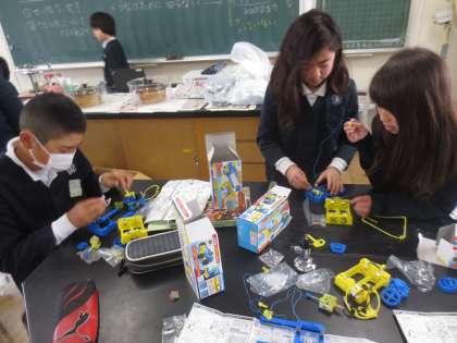 作ったモーターを次は、自動車の動力としてつかいます。みんな集中して学習をしていました。