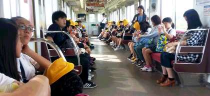 賢島からの、電車内です。「鳥羽水族館」に移動中です。