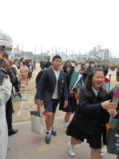 輝く笑顔で巣立っていく卒業生です。少しさみしく目がうるんでいる卒業生もいましたが・・・みんな素敵な笑顔でした。