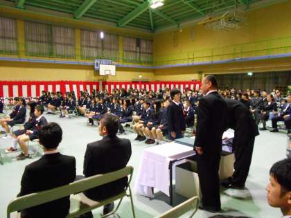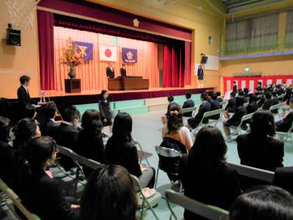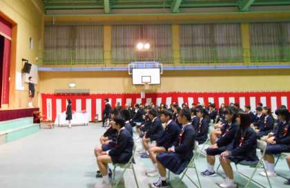 担任の先生から名前を呼ばれ、堂々と返事をし、一人一人が舞台で、「夢」「感謝」のメッセージを家族の方々に伝えました。そして、落ち着いた姿でしっかりと一人一人が卒業証書をうけとっていました。