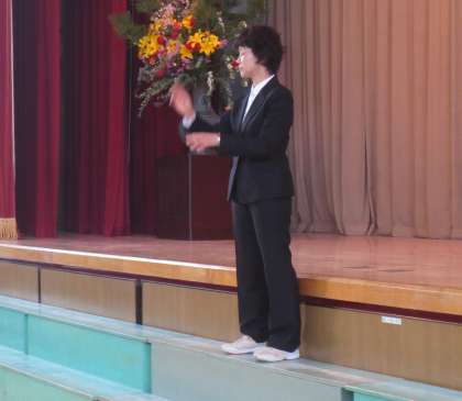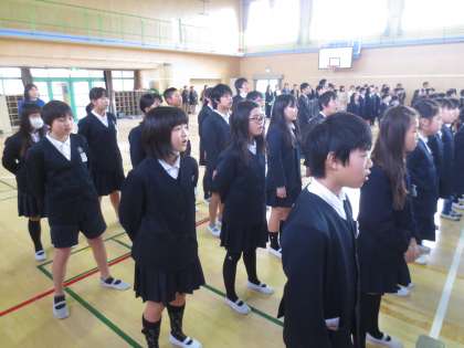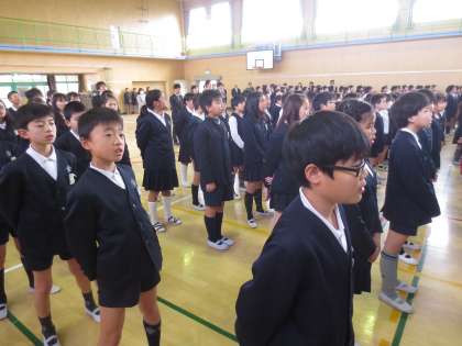 4月から6年生に進級する5年生です。とてもしっかりとした姿勢で、歌声を講堂中に響かせています。