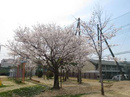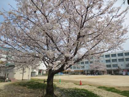 地域の方に寄贈していただいた桜を含め、校庭の桜は10本あり、どの桜も満開です。