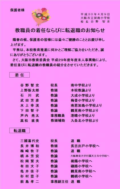 4/10(火) 教職員異動のお知らせ