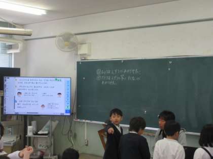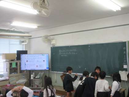 大型テレビを活用して練習問題を提示しています。今年度もさらにICTを活用した授業を展開していきます。