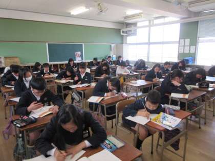 みんな、とても集中して感想文を書いています。さすが最高学年の6年生です。